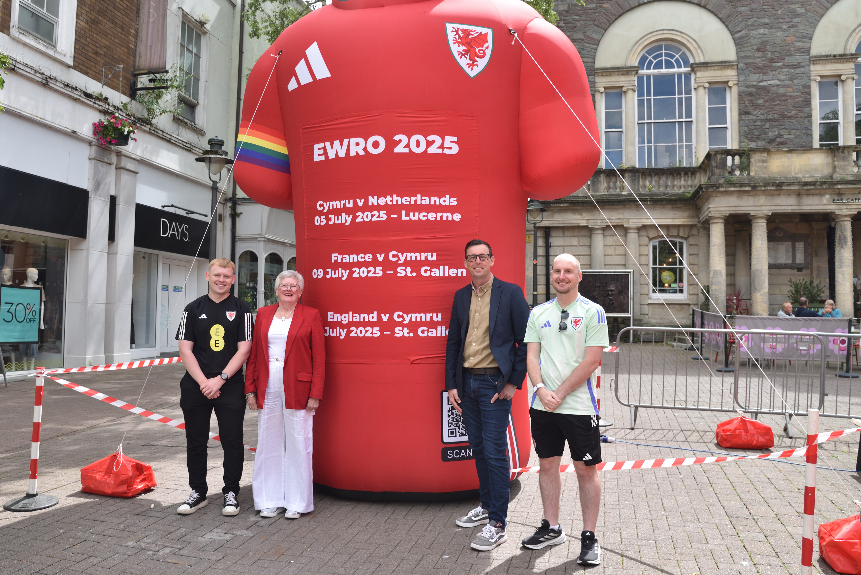 Carmarthenshire County Council is hosting a national celebration today as the Giant Cymru Shirt arrives in Guildhall Square, Carmarthen — part of the FAW’s ‘Ein Crys Cymru’ Tour, marking Wales' historic qualification for UEFA Women’s EURO 2025. The event is open until 7pm this evening, with local residents, schools, and football fans encouraged to join the festivities and show their support for the national women’s team.