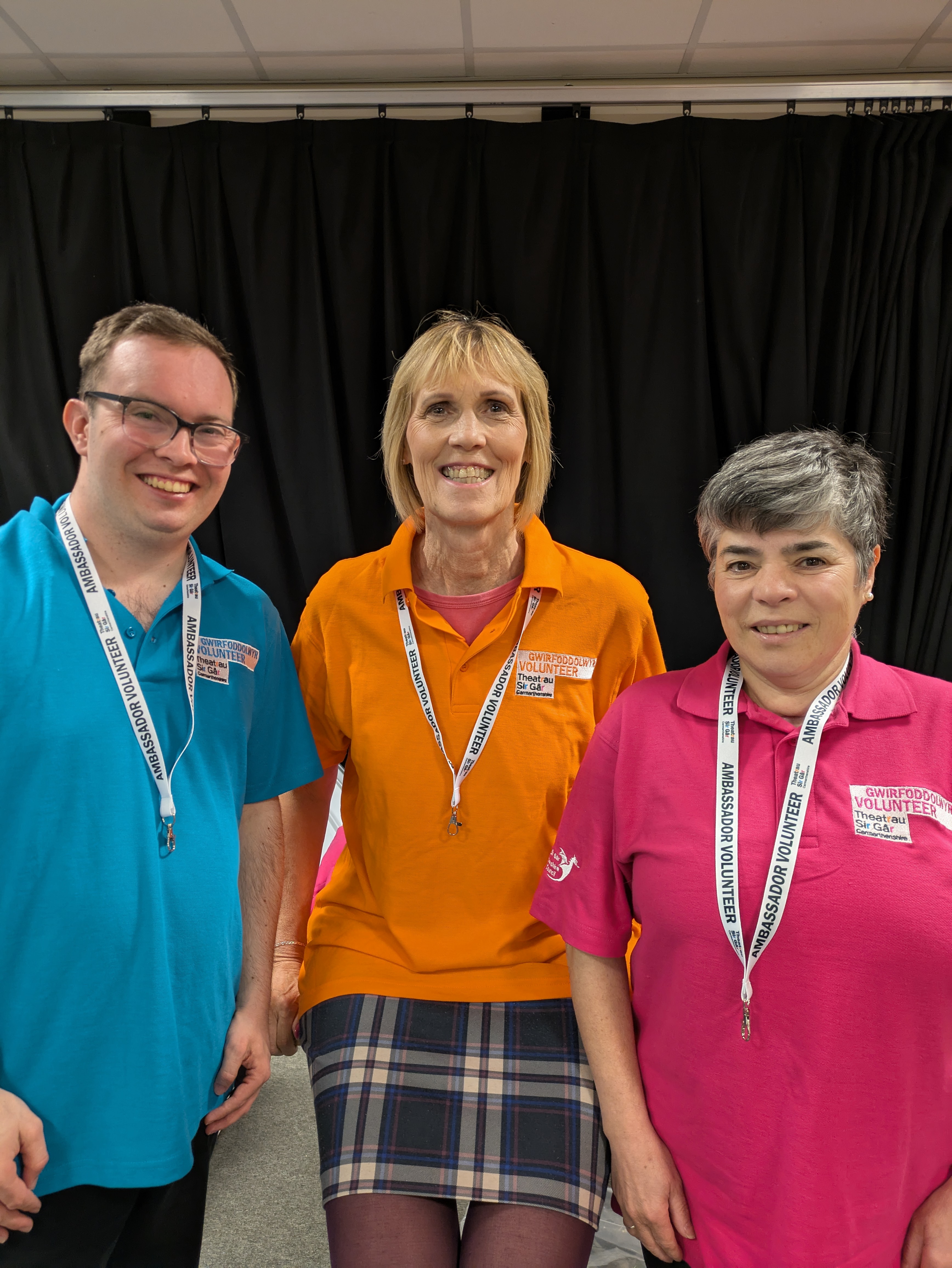 At Theatrau Sir Gâr, volunteers can get involved in a variety of roles. Through the Ambassadors programme, they work closely with the Theatre’s marketing team and management to promote events, support audiences, and help shape future programming. Whether it’s greeting guests at performances, sharing upcoming shows with local groups, providing support at relaxed performances, or contributing ideas to creative projects, the work of volunteers is essential in keeping the theatre vibrant and welcoming.